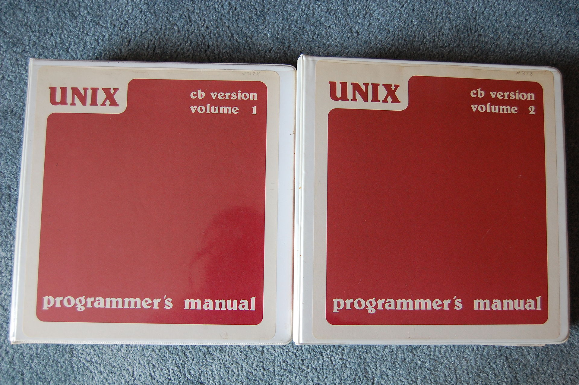Pictured above are binders containing the CB-UNIX Programmer's Manual. These were uploaded as public domain to WikiMedia by user Lvcipriani here. It is unknown whether these are the binders the above scans originate from or represent a different edition.